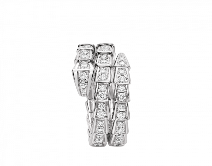 تقديراً للثعبان الذي يمثل روحها، قامت بولغري بغرس قوة الإغواء في خاتم «سيربنتي فايبر» من خلال تصميمه الآسر والمفعم بالجاذبية والإغواء. تلتف قطعة المجوهرات الأنيقة حول الإصبع لتتألق بجمال الحراشف الفاخر وبانسيابية الثعبان المتميزة