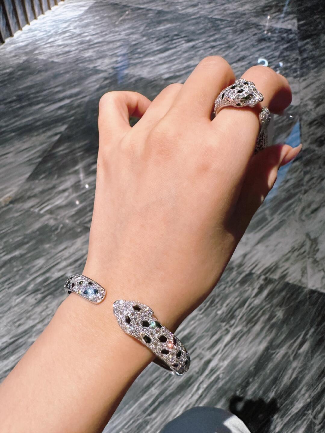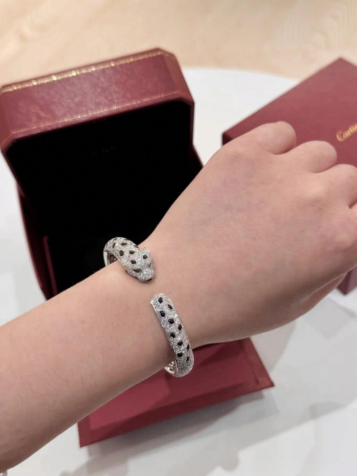 سوار Panthère de Cartier، ذهب أبيض، ذهب، ذهب وردي 750/1000، أونيكس، مرصع بحجرتي زمرّد و225 ماسة قطع بريانت يبلغ مجموعها 2.55 قيراط