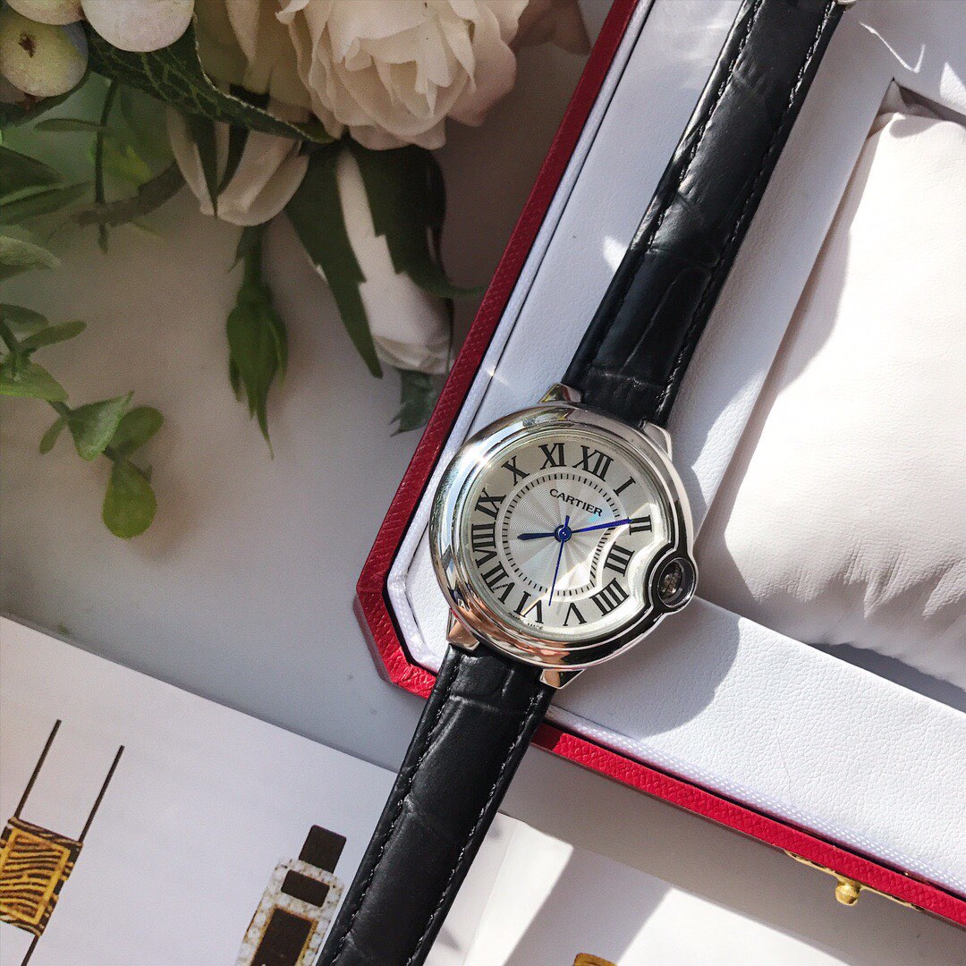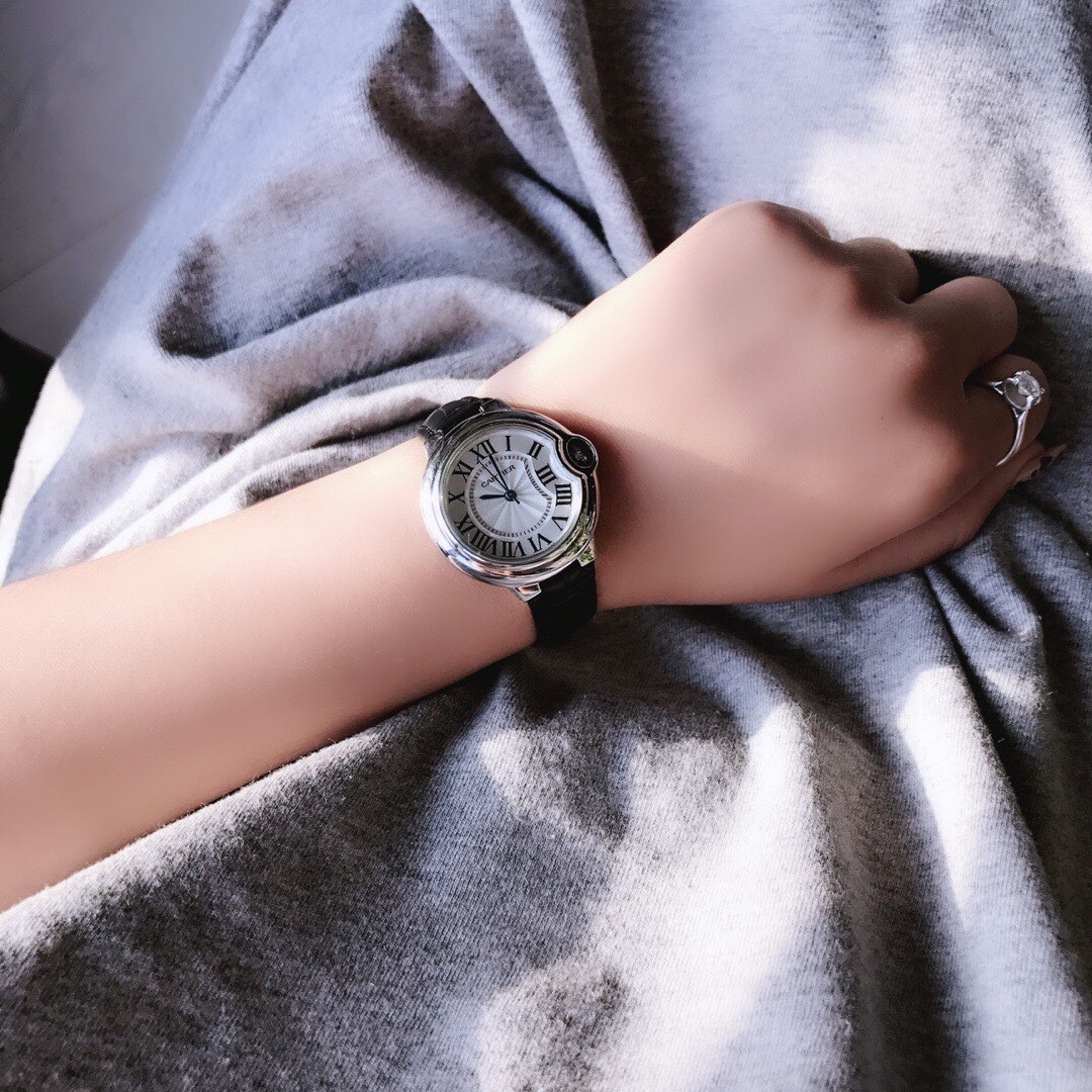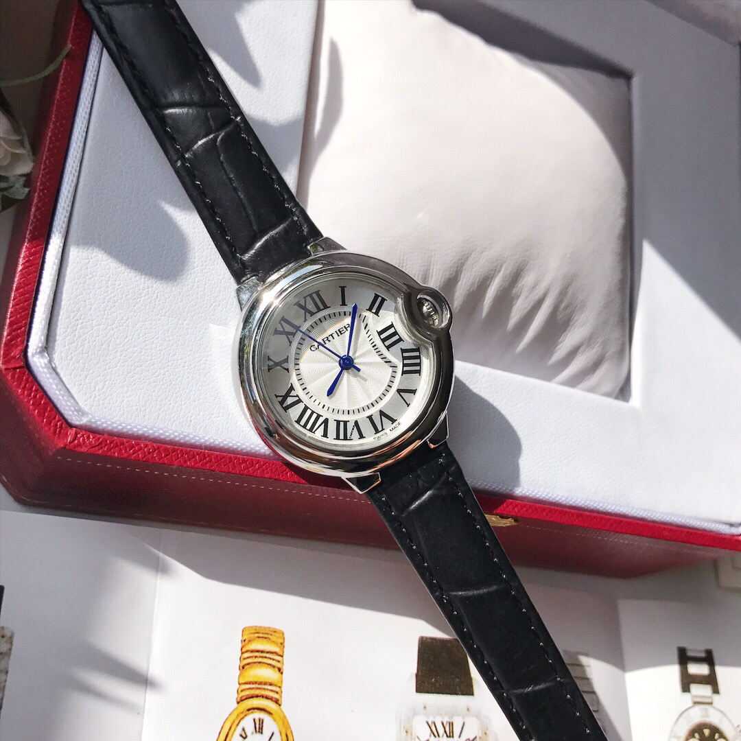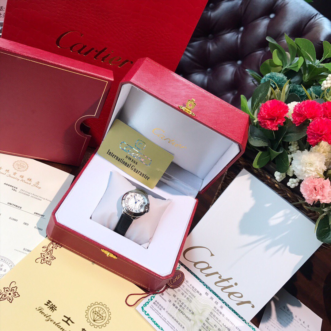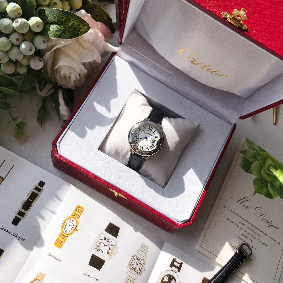 【ذهب عيار 18 مع علبة أصلية】ساعة كارتييه سلسلة البالون الأزرق الحزام الأسود